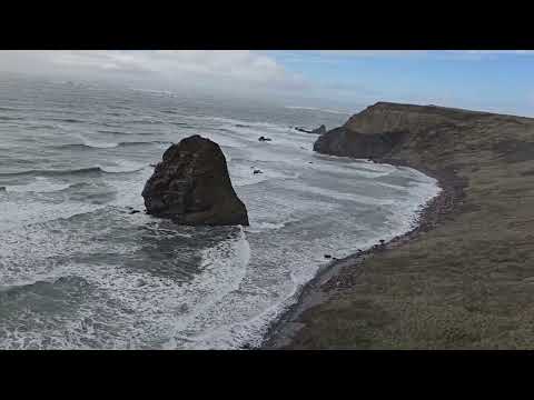 rswfire shares two interconnected stories while tending to a sore ear piercing from Kentucky. First, he recounts asking out a seasonal worker (the "gatekeeper") who declined due to timing, noting his own emotional growth in handling rejection. Second, he describes meeting Chad at Cape Blanco beach - initially encountering him while wanting to "play with" the ocean, then reconnecting days later at the lighthouse where Chad sat fearlessly on the cliff edge. They exchanged numbers and have been hiking together frequently. The transmission includes video footage of Chad at Cape Sebastian, showing the submarine-shaped rock formation and ocean waves.