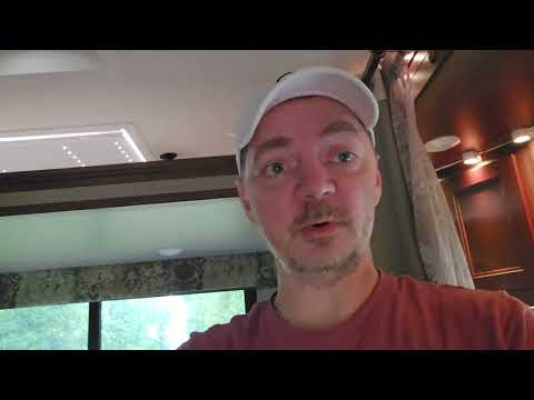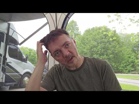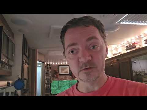 rswfire reflects on declining self-confidence and reduced posting frequency while adapting to full-time RV living. He distinguishes between camping and living in a camper, noting unexpected challenges. **Technical issues** include unknown tank levels, smelly freshwater, and needed maintenance on slide systems and awning. He's implementing solutions like collapsible buckets for water management and consulting ChatGPT for maintenance guidance. **Practical struggles** involve organization, storage limitations, power consumption with new appliances, and pet management (Bailey throwing up on rugs). Solar panels are currently stored in the shower, and reflective window coverings require screen removal and storage. **Lifestyle adaptation** includes learning to treat the RV as home rather than temporary camping, watching Star Trek, and managing daily routines. He emphasizes the time needed for adjustment and his goal to master RV systems before traveling to Nevada. The transmission concludes with his intention to blend natural living with modern technology preferences including computers, internet, and RGB lighting.