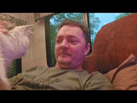 The speaker wakes at 5:30 AM in their RV and discusses sleep quality issues related to mattress firmness and an unlevel bed surface. They use a leveler tool to demonstrate that while the RV itself is level, the bed surface has significant variations that disrupt sleep. The speaker explains structural issues with the slide-out mechanism creating gaps under the mattress and considers temporary fixes like plywood. Bailey, a 15-pound cat, appears frequently throughout the transmission. The speaker describes a complex relationship with Bailey, explaining how their feelings changed 6 months ago after Bailey attacked his brother Oliver during nighttime fights triggered by seeing other cats outside. Despite loving Bailey since raising him from 6 weeks old, the speaker acknowledges the bond was altered by these incidents. The speaker reflects on their YouTube content, noting that most viewers seem to treat them as entertainment rather than seeking genuine help, though they express gratitude for viewers who are taking steps toward their dreams. They mention having a Minecraft server and considering returning to the game for creative outlet. The transmission ends with plans to make coffee and continue organizing the RV space.