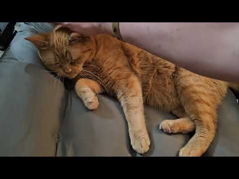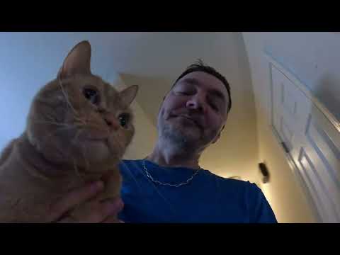 rswfire records his cat Oliver during an extended period of hyperactive, playful behavior. Oliver has been harassing and following rswfire around for hours, displaying wild energy that contrasts with his usual calm demeanor when the camera is on. rswfire expresses concern about how Oliver's behavior will translate to living in an RV, particularly worrying about damage to leather furniture. The transmission shows rswfire attempting to calm Oliver down while also showing affection for the cat's playful antics. rswfire mentions a new recliner he purchased for outdoor use with the RV and notes that Oliver has been using it frequently. The session captures the reality of managing a high-energy pet in preparation for mobile living.