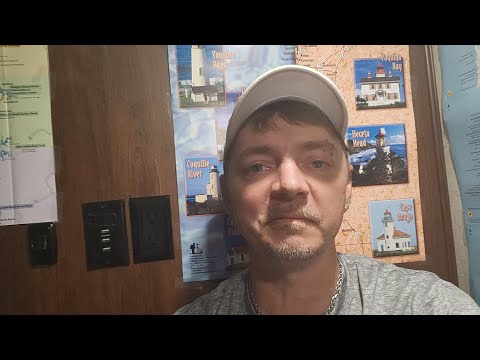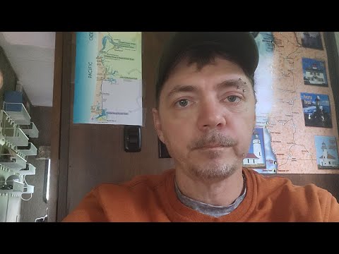 rswfire records from his RV on his first night camping off-grid at a National Forest campground on the Oregon coast. He demonstrates his portable power supply, which shows 92% charge and 41 hours of remaining battery life. The campground has no power or water hookups and is located less than a mile from the ocean. He reflects on his transformation over the past year since starting his YouTube channel in February 2024 and moving into his RV on his birthday (April 11). He describes becoming more secure, open to connection, and less afraid compared to when he began his journey. He expresses frustration that his audience focused on superficial aspects rather than recognizing his actual transformation. rswfire discusses his living situation - sleeping in his "shitty bed" in a small alcove, illuminated by a single light, with no heat but comfortable under blankets due to the stable coastal climate. He emphasizes that his needs are met and he doesn't require more than his current setup, though he's considering getting a second power supply. He addresses his audience directly, expressing mourning for their lack of aliveness and inviting them to meet him where he is. He mentions recently asking for help and needing to solve his internet connectivity issues. Due to poor phone signal, he plans to drive to Florence to get Taco Bell and upload his video. rswfire observes other car campers who arrived while he was sleeping, interpreting this as people "on the edge of society" and "survival." He predicts more people will end up in similar situations due to accelerating destabilization. During his drive to Florence, he shares a story about Brian, a van lifer and construction flagger he met months earlier. After initially connecting over breakfast, their potential friendship didn't develop when Brian tried to give advice rather than simply witnessing rswfire's spontaneous 3 AM food run to California. He reflects on his role as a "trailblazer" who helps others by having already walked difficult paths. He mentions his teeth as "battle scars" from a period when he made himself smaller and lived conventionally, which nearly killed him. At Taco Bell in Florence, he orders food and mentions a young employee he's had flirtatious moments with previously, though the employee wasn't working that night. He plans to eat in the parking lot while uploading his video, then return to camp to spend time outside, possibly getting firewood. He expresses regret about selling his solar setup the previous month, just before being removed from the state park volunteer system.