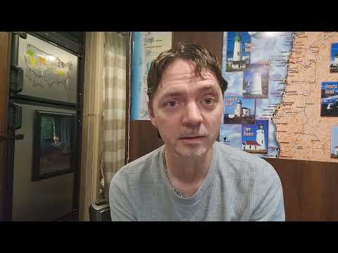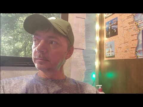 rswfire prepares to move from a campground with hookups to an off-grid national forest campground. He has four nights booked at $22-25 per night with $180 cash remaining after receiving $100 from his friend John. The move represents a deliberate life disruption for pattern-breaking and growth. **Morning routine includes:** showering, transferring frozen food to John, organizing the RV interior, and driving one hour south to Florence area. He acknowledges the driving challenge of towing his Jeep but expresses confidence. **Off-grid preparations:** His RV batteries will die without hookups, requiring adaptation. He sold his solar panels last month to pay vehicle payments (both RV and Jeep remain behind on payments). He has a small battery device for charging electronics via his Jeep's inverter. **Community building:** He plans to clearly name his financial needs without shame, viewing mutual aid as natural human behavior. He references building a website and community centered around himself - not as a leader or teacher, but as a relational being. He emphasizes his integrated cognitive framework versus others' fragmented systems. **Practical concerns:** May need to convert cash to prepaid credit cards for extending campground stays. Hopes audience members will send money for campground fees. Expects 14-day maximum stay limits. Plans to adapt daily routines like morning coffee due to power limitations.